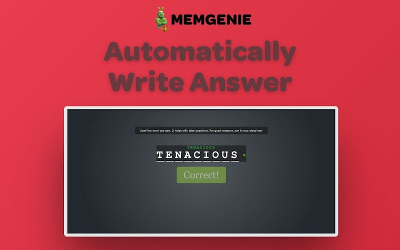 Automatically Writes the Correct Answer For exercises that require typed responses, MemGenie types the answer for you — character by character, with realistic delays and occasional corrections. It doesn't paste the word in instantly like a bot. It types it like a human would.